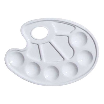 -. Title : 9" Oval Plastic Tray Palette , 10-Well with a Thumb Hole
