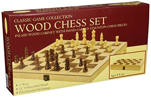 Deluxe Wood Chess Set with 16" x 16" beautiful high quality folding, felted and padded, inlaid wood chess board with 1 3/4" squares and 3" King. Chessmen are hand-carved in the classic Staunton style.