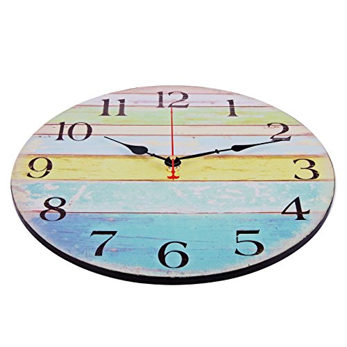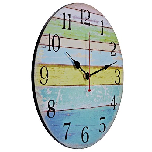 -. Title : Old Oak Large Decorative Wall Clock Vintage Silent Non-Ticking Battery Operated Colorful Wooden Round for Living Room Kitchen Bathroom Bedroom Wall Decor