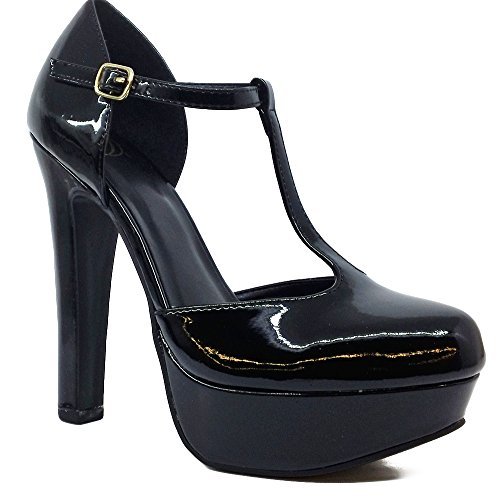 -. Binding : Apparel -. Brand : Delicious -. Color : black pat -. Department : womens -. Feature : model is a size 7, and a size 7 fits her perfectly. / manmade material -. Model : Henley -. PackageQuantity : 1 -. ProductGroup : Shoes -. ProductTypeName : SHOES -. Title : Delicious Women's Henley Faux Suede Closed Toe T-Strap Platform High Heel