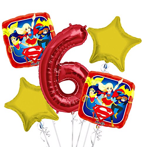 -. Title : Super Hero Girls Balloon Bouquet 6th Birthday 5 pcs - Party Supplies