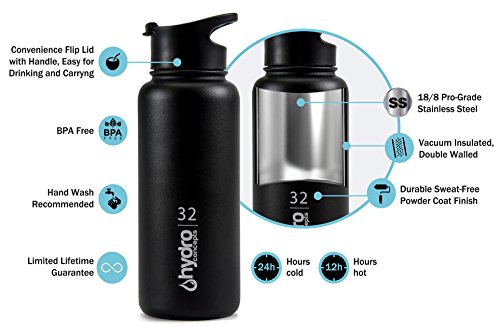 SUPERIOR INSULATION: Double walled and vacuum insulation features keep hot or cold temperatures longer and prevents condensation or heat transfer to the outside of the bottle. Hot water remains hot for 12hrs. and cold water remains cold for 24hrs.