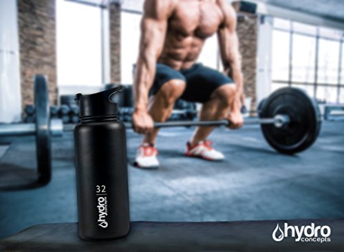 SLIM DESIGN with SWEAT-FREE POWDER COATING: Hydro Concepts 32oz Shaker Bottler has an attractive black powder coating finish that guarantee a no-slip and no-sweat optimum grip every time anywhere.