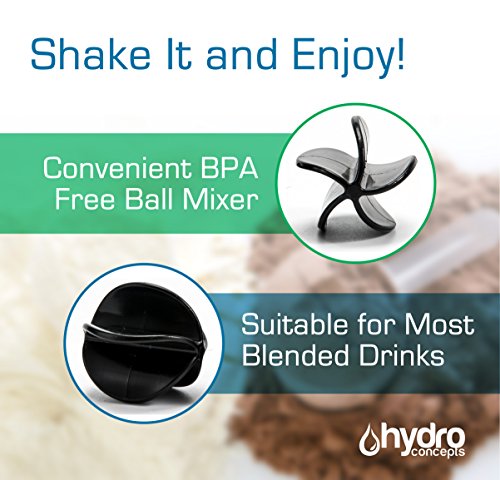 VERSATILE: This is more than a protein shaker. The Hydro Concepts Shaker Bottle is suitable for numerous cold or hot non-carbonated beverages. It comes with a mixer ball that moves freely inside the bottle as you shake, mixing even the thickest ingredients easily.