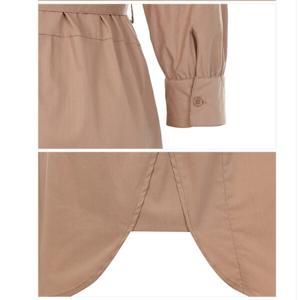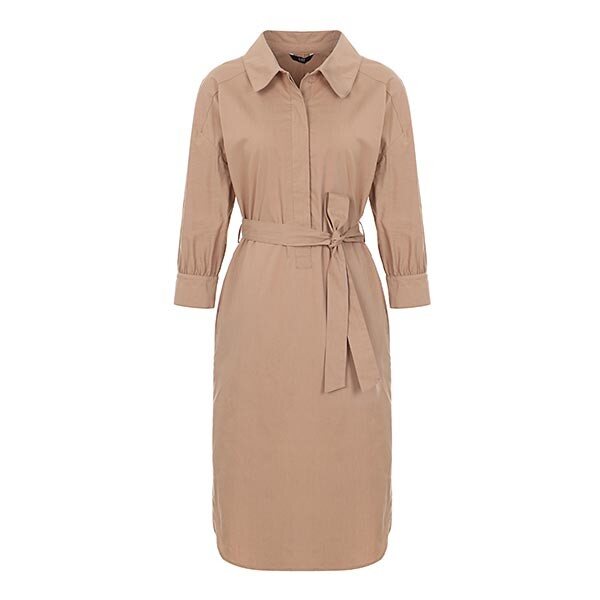볼륨감있는 슬리브와 라운드 햄 라인이 부드러운 실루엣의 스트레치 코튼 원피스입니다