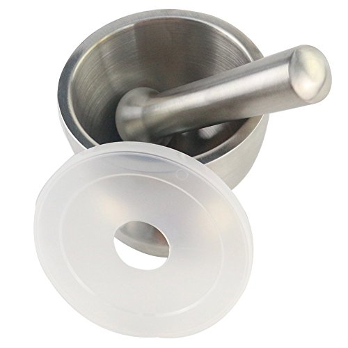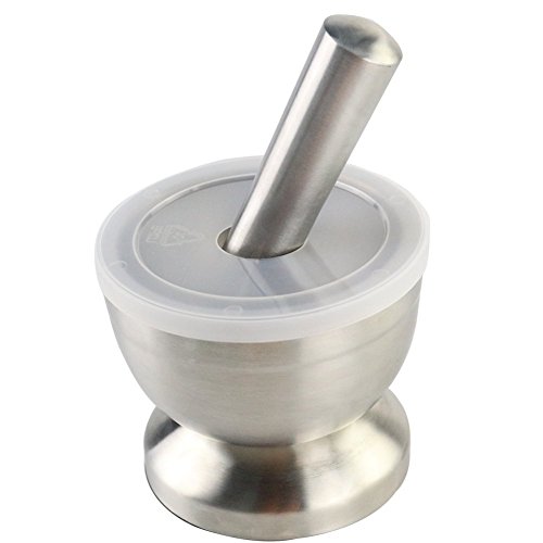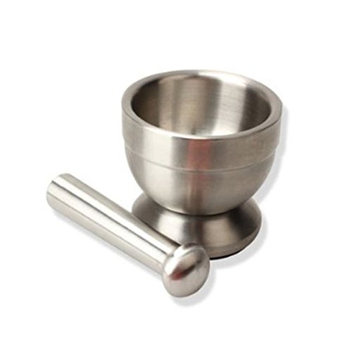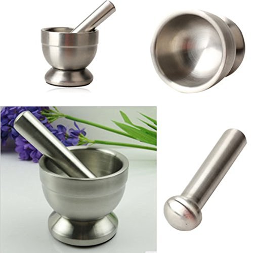Features: With lid, solid articles in the grinding to prevent splashing out. The Mortar and Pestle stands up to the abuse of grinding and its clean, elegant lines will look great on your kitchen counter. The heavy stainless steel mortar has a non-skid base for secure placement while grinding. Also used in the pharmacy. 100% brand new and high quality Double stainless steel construction,heavy and durable. Clean elegant lines look great on your counter. Mortar has a non-skid base for secure placement while grinding Non-porous stainless steel resists odors Easy to clean. Can be used to grind garlic,nuts,pills etc. A great, modern design that will look great in any kitchen or pharmacy. Size: ? Mortar external diameter:Approx.100mm ? Mortar inner diameter:Approx.85mm ? Mortar height:Approx.92mm ? Pestle small diameter:About 25mm ? Pestle large diameter:About 35mm ? Pestle length:Approx.140mm