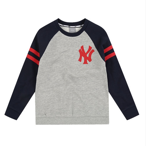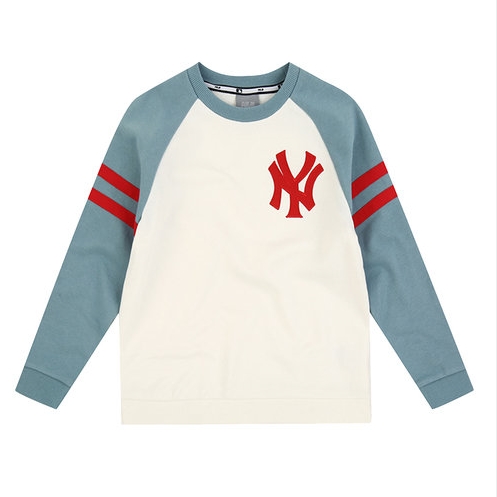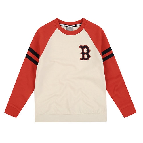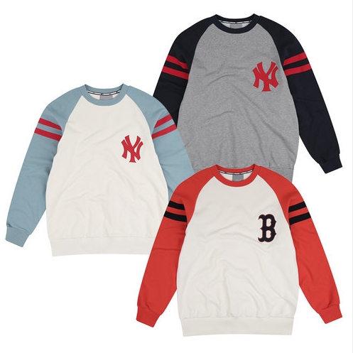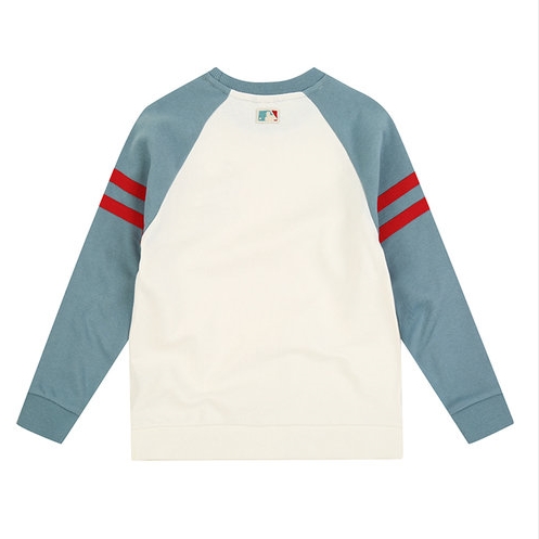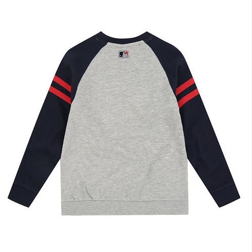 MLB 시그니처 컬러 배색의 클래식 맨투맨(오버핏). 쿠퍼스 로고와 배색 소매의 띠가 어우러져 YOUNG한 감성으로 연출 가능한 스타일.