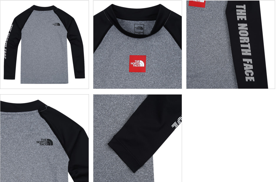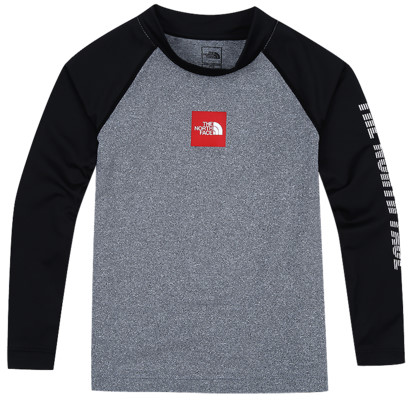박스 로고 포인트 래쉬가드 티셔츠입니다. 소매에 TNF 로고로 스포티함을 살려준 라글란 소매 배색 스타일입니다. AERO COOL원사 사용으로 흡습속건 기능이 우수하며, UV차단 및 신축성이 뛰어나 활동적인 워터 스포츠에 적합합니다.
