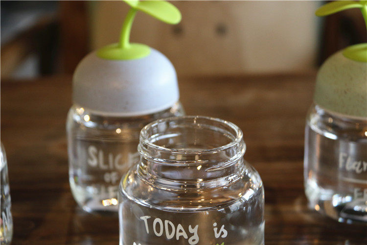 简约韩版创意玻璃杯可爱小草清新耐热透明花茶杯男女学生便携水杯