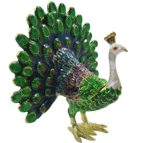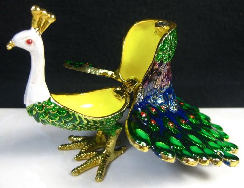-. Title : Plumage Peacock Bejeweled Collectible Trinket Jewelry Box