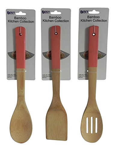 -. Title : Bamboo Kitchen Tools with Color Handles, Set of 3 Kitchen Utensils Organically Grown