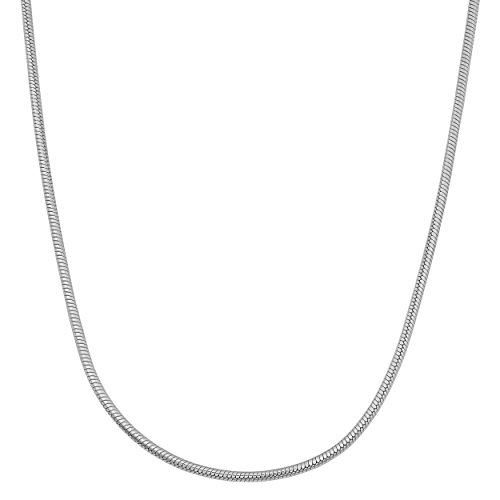 -. Binding : Jewelry -. Brand : Kooljewelry -. Department : womens -. Feature : Classic snake chain makes a simple basic casual necklace / An essential piece by itself or combined with your favorite pendant / Comes with a comfortable spring ring closure / Crafted in sterling silver with rhodium plating to give it a look of white gold and avoid tarnishing -. Label : Fremada -. Manufacturer : Fremada -. Model : SSRSNK025RH -. MPN : SSRSNK025RH -. PartNumber : SSRSNK025RH -. ProductGroup : Jewelry -. ProductTypeName : FASHIONNECKLACEBRACELETANKLET -. Publisher : Fremada -. Studio : Fremada -. Title : Sterling Silver 1.2mm Round Snake Chain (16, 18, 20, 22, 24 or 30 inch)