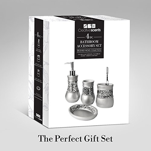 MULTIPLE USERS; the Crackled Glass Nickel Collection has been specifically designed to fit the needs of multiple users. This set is just perfect for any modern master or secondary bathroom, and will definitely make a bold statement and a strong impression!