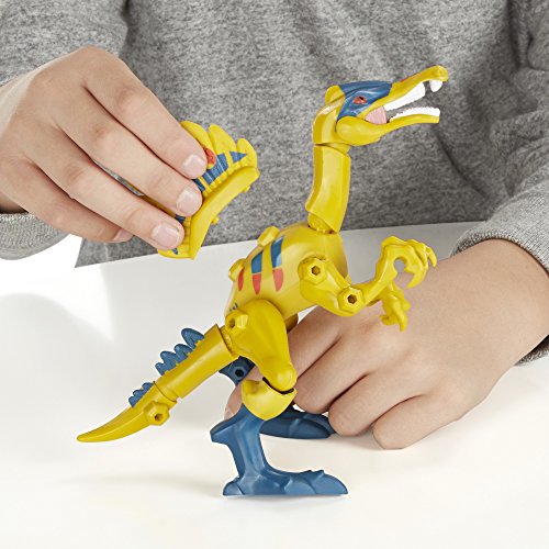 -. Feature : Jurassic World Hero Mashers figures are totally customizable / Spinosaurus figure can become a hybrid dino / Mash up with Mosasaurus (sold separately) to build a Spino-Mosasaurus / Legs, tails, and claws detach / Includes figure and 6 accessories
