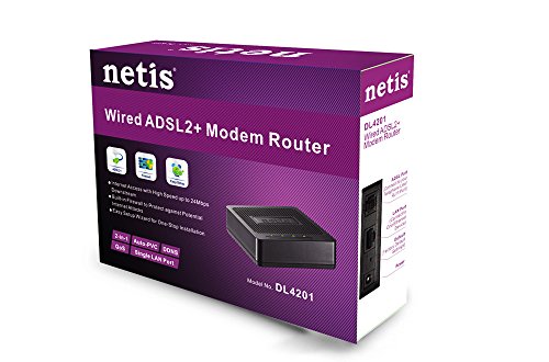 The netis DL4201 Wired ADSL2+ Modem Router is a high performance modem router that provides a full rate of ADSL2+ standard. It is a 2 in 1 device that combines the function of a high-speed DSL modem and a one-Port 10/100Mbps router. With the built-in Quick Start Wizard, you can easily create a secure and high-speed wired network to share files, music, photos, and printers with multiple computers.Feature