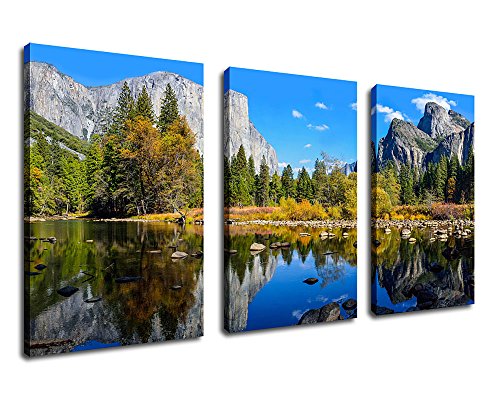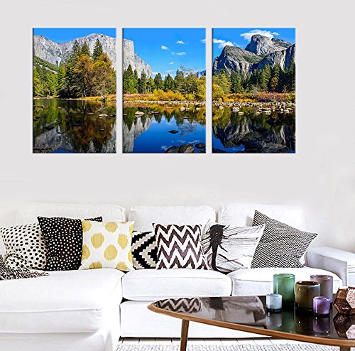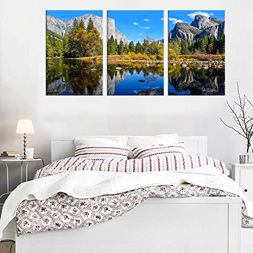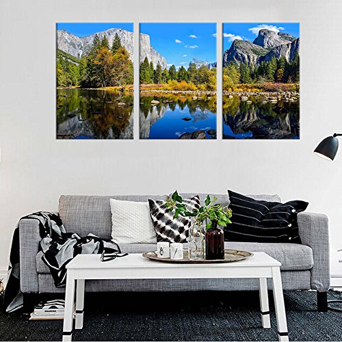 Canvas Wall Art Mountain Lake Nature Pictures 20" x 30" x 3 Pieces Large Canvas Art Yosemite National Park Canvas Artwork for Home Decoration