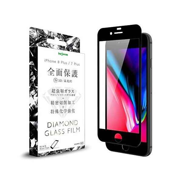 iPhone 8 Plus /7Plus ガラス フィルム 全面保護 耐衝撃 ダイヤモンド ガラスフィルム 光沢 ブラック