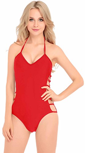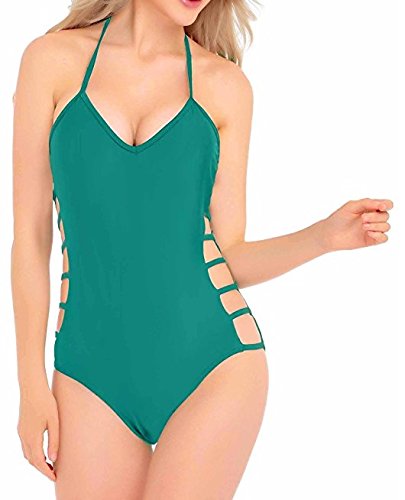 | Womens One Piece Sexy Plunge Neck Strappy Swimsuit Swimwear Monokini |