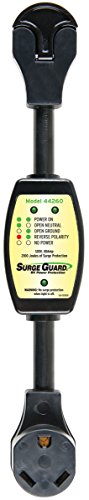 - Adapter plugs directly between the power pedestal and your line cord and provides a graphic verification of electrical power before you hook up your RV
