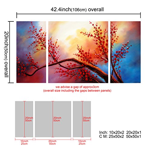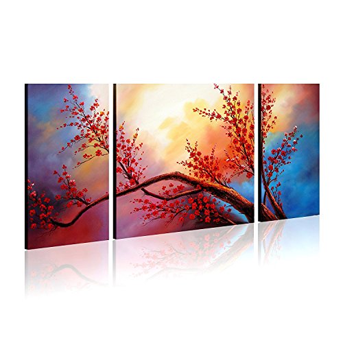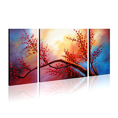 -. Title : FLY SPRAY 3 Panels Hand Painted Oil Paintings Red Flowers Trees Plants On Canvas Ready To Hang Modern Still Life Landscape Art Stretched Framed Wall Art Home Deco Living Room Bedroom Dining Room Office