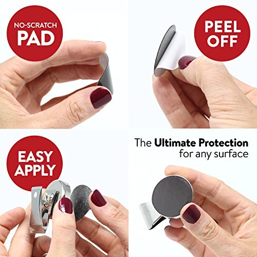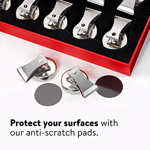 FREE NON-SCRATCH PADS BECAUSE YOU CARE ABOUT YOUR SURFACE : Your stainless steel magnetic clips include 10 non-scratch pads to protect delicate surfaces. Plus, they don’t slip like weaker magnets. Perfect for whiteboards
