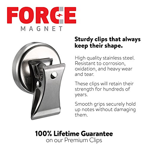 FORCE MAGNET - 10 Powerful Stainless Steel Magnetic Bulldog Clips, Heavy Duty Refrigerator Magnet Hook Clips, FREE Anti Scratch Pads ~ The MOST POWERFUL Magnet for House, Office, Classroom