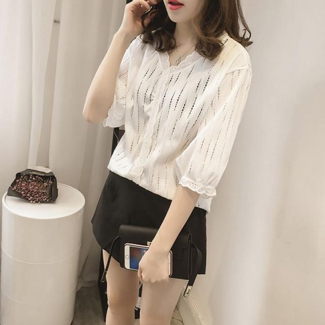 ホワイトカラーが爽やかな、五分袖ブラウスです。