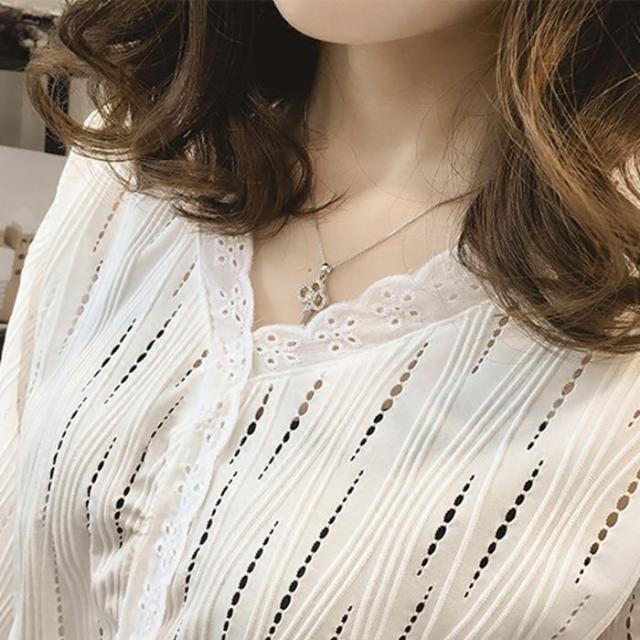 Vネック部分と袖口にはプチフリルデザインでシンプルな中に女性らしいディテールが詰まってます◎