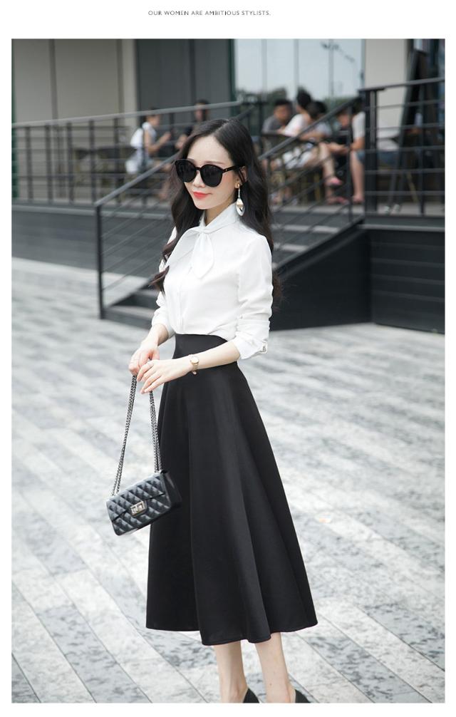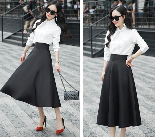 ふくらはぎの隠れるミモレ丈はショートブーツやパンプスとのコーディネイトがおすすめ◎