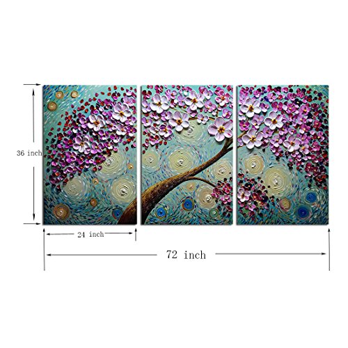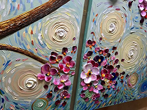 High quailty: Palette knife paintings ,100% hand painted. Part of the blossom petals up to 5 mm. Made of Imported Fine Acrylic, which can keep colorful permanently without fading and cracking.