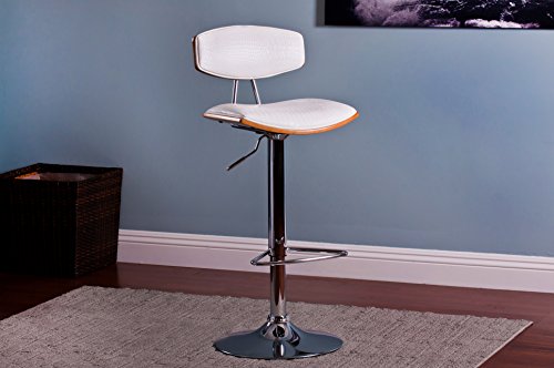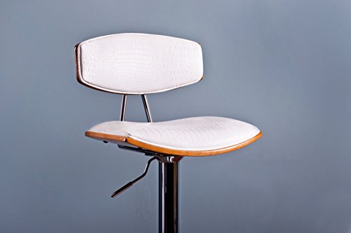 - Feature : Sleek and Sophisticated: White crocodile leather seat cushion is complemented by an eye-catching contemporary look and streamlined back / Comfortable cushioning: Although streamlined, the seat and back are padded. Seat features curved design to cup the body. / Modern Seating for the Den: Create social seating in any room / Built to Last: Barstool uses a metal pedestal base. A polished chrome foot rest adds to sturdy seating. / Adjustable height: Our Barstool hits the right height. Built-in lift mechanism adjusts seat height to perfectly match up with counter tops, table tops and home bars.