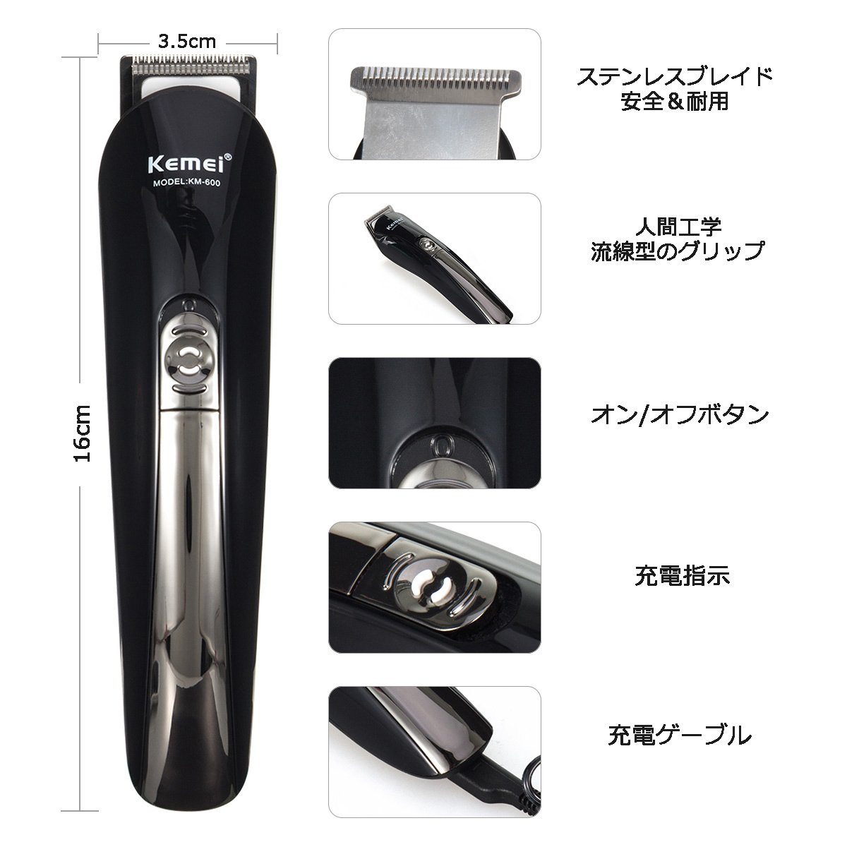 You can set the length in 5 stages, and you can precisely cut with 5 comb-type heads of different lengths, and it is adjusted to your preferred hairstyle and length.