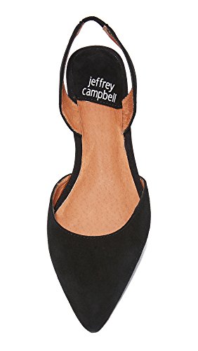 Product DescriptionSuede Jeffrey Campbell flats in a refined, pointed-toe profile. Slingback strap with elastic at the heel. Low, covered heel. Man made sole.0