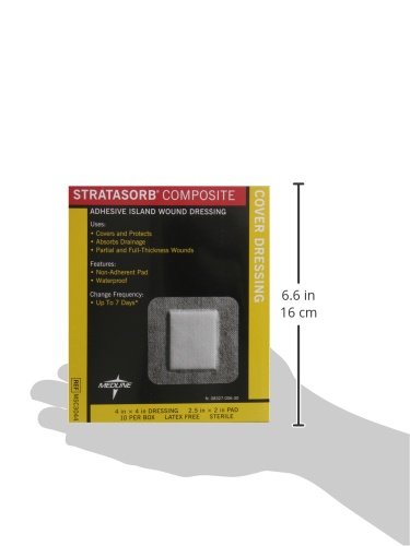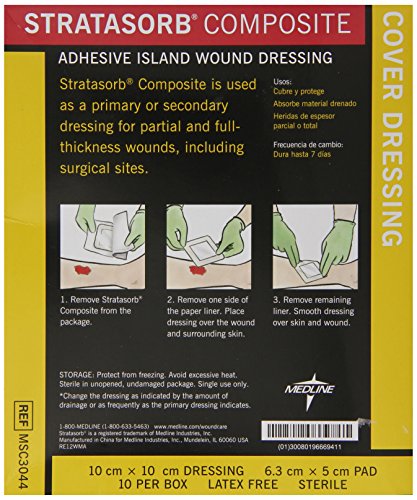Stratasorb Composite Island Dressing has four distinct layers designed to cover all stages of wound care. Layer 1, a non-adherent contact layer, protects the wound site and will not stick to granulating tissue. Layer 2, a soft pad, absorbs drainage. Layer 3, a non-woven backing with an adhesive border, securely holds the contact pad in place. Layer 4, a semi-occlusive, polyurethane film, helps deter external contaminants and maintain an optimal wound environment. Rectangular shape is designed for post-op applications.Feature