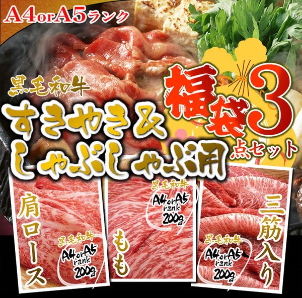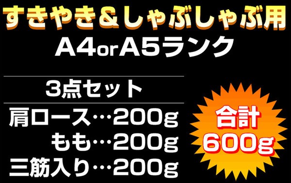 【商品名】A4・A5等級のみ黒毛和牛 すき焼き用3点セット600g