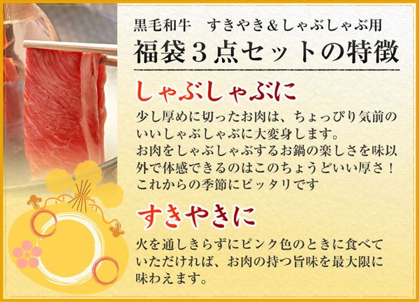 黒毛和牛すき焼き用3点セット600g