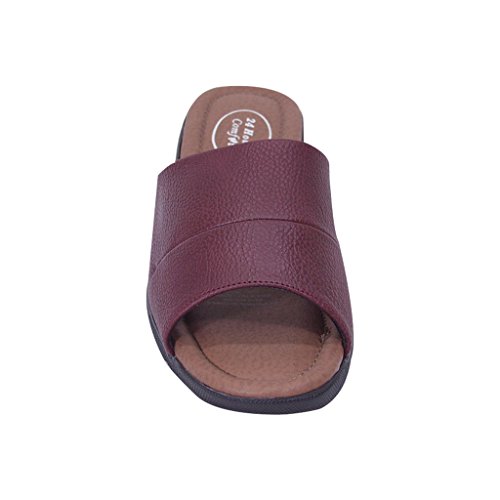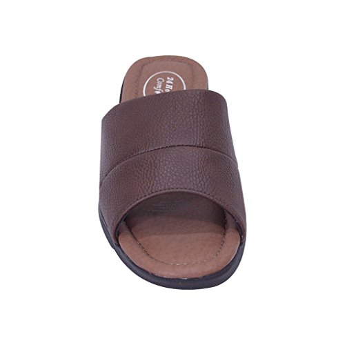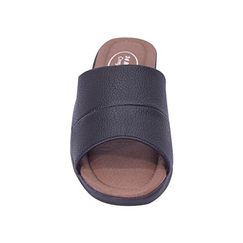 Binding : Apparel Product Description 24 Hour Comfort Stacy women's extra wide width simple and casual open-toe slide sandal. This ladies 1.5" low heel slip on sandal features a soft grain faux leather upper along with an extra cushioned insole, made of durable, lightweight EVA/rubber materials outsole for maximum surface grip to give you comfort on-the-go. **About Company** Footwear International Corporation (FootwearUS), located in Fairfield NJ, began its manufacturing and wholesale operations in 1977 and has since continued to supply quality footwear at competitive prices to consumers located across the globe. Specializing in wide width shoes, our variety of trademark brands (24 Hour Comfort, Peerage, Fuzzy, and Floral) have become widely recognized for quality, fashion, comfort, and affordability. ATTENTION SHOPPERS: Find a larger selection of Wide Width styles at our retail website FazPaz . com. Sign Up is QUICK and FREE, plus receive a $20 Gift Credit, FREE Shipping, FREE Exchanges, 365 Days Easy Return, and Priority Delivery on all merchandise. 0