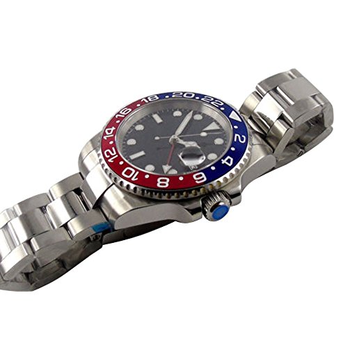 -. Title : Whatswatch 40mm parnis black dial GMT red blue Bezel date window automatic mens watch PA-01179