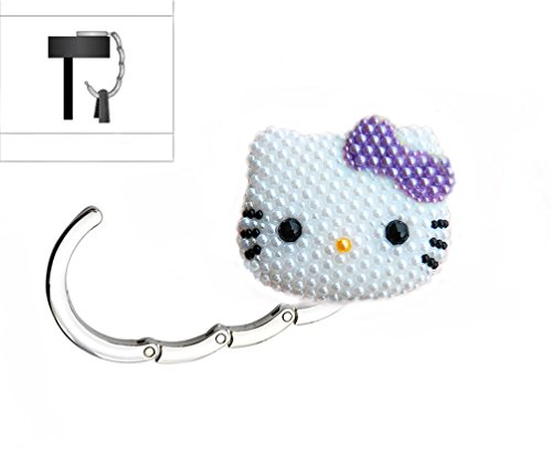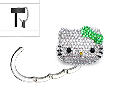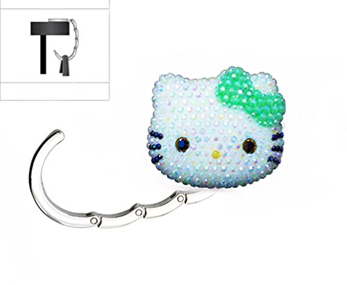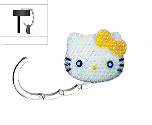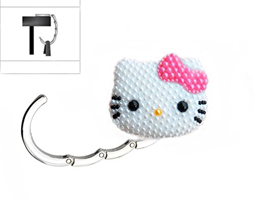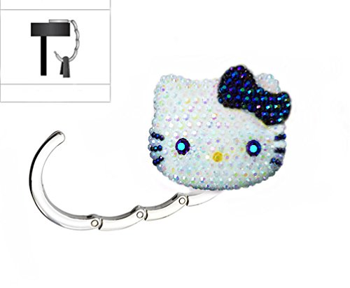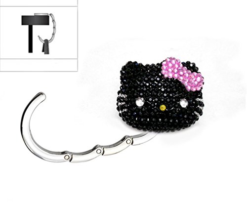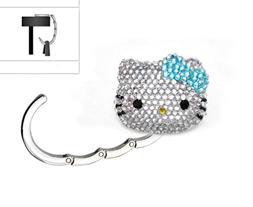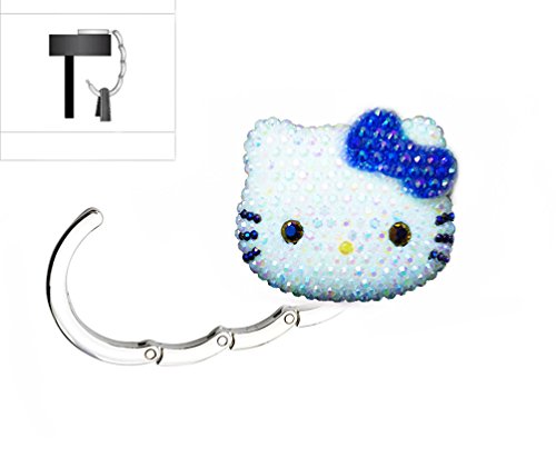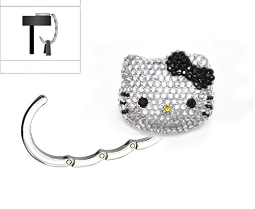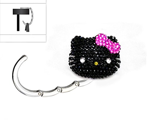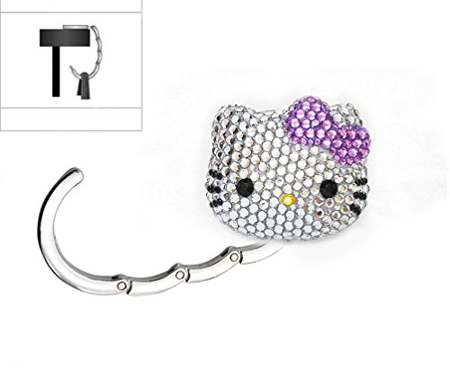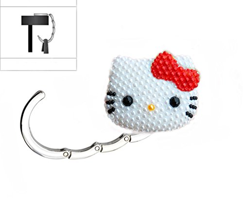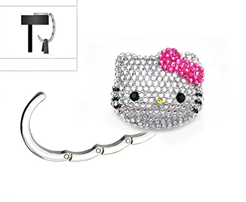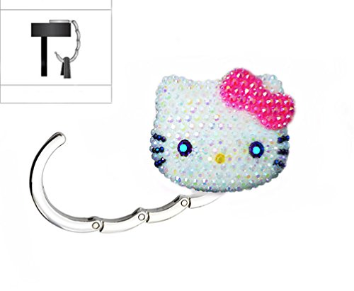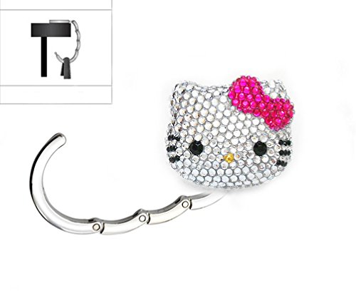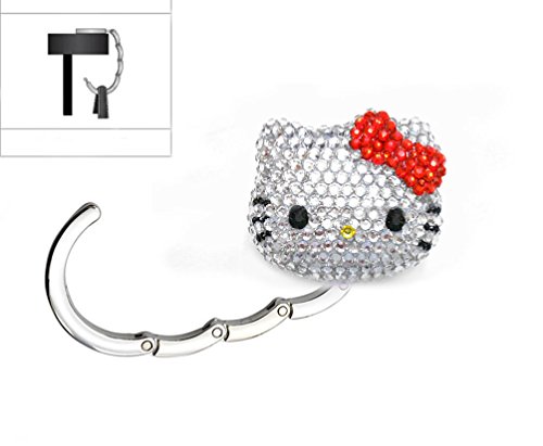 LOVEKITTY 3D Fully Blinged Out Foldable Hello Kitty Inspired Purse Holder, Purse Hook, Handbag Hanger, Purse Table Hook (Red / Rhinestones)