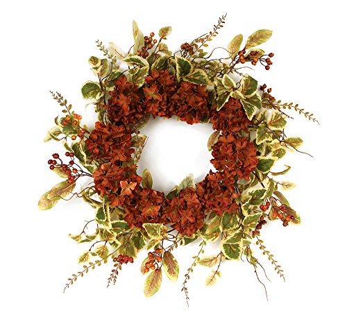 Melrose International Rust Colored Hydrangea Wreath with Green Leaves and Berries, 28-Inch