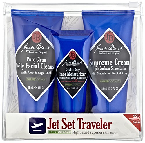 -. Artist : Magnum -. Binding : Misc. -. Brand : Jack Black -. Color : no color -. Department : Beauty -. EAN : 0882256996739 -. Feature : Cleanse, shave, moisturize and protect your skin while you are away from home. A $40 Value -. IsAdultProduct : 0 -. IsAutographed : 0 -. IsMemorabilia : 0 -. Label : Jack Black -. LegalDisclaimer : This product can only be shipped to : United States -. Manufacturer : Jack Black -. Model : 8037 -. MPN : 8037 -. NumberOfDiscs : 1 -. NumberOfItems : 3 -. PackageQuantity : 1 -. PartNumber : 8037 -. ProductGroup : Prestige Beauty -. ProductTypeName : LUXURY_BEAUTY -. Publisher : Jack Black -. ReleaseDate : 2015-02-01 -. Size : One Size -. Studio : Jack Black -. Title : Jack Black PureScience Jet Set Traveler -. UPC : 882256996739
