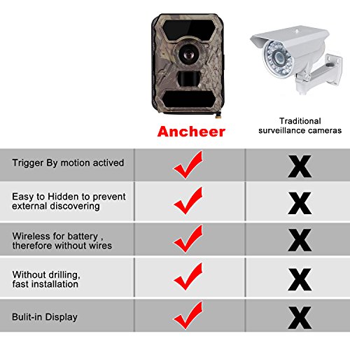 【High Resolution and Super Fast Trigger Time】Ancheer game camera has 12MP 1080P high quality crystal clear day & night photo/video,color(day) and black& white(at night), will trigger within 0.4s upon motion,0 second delay from triggering up to 5 photos,make sure every details will be captured