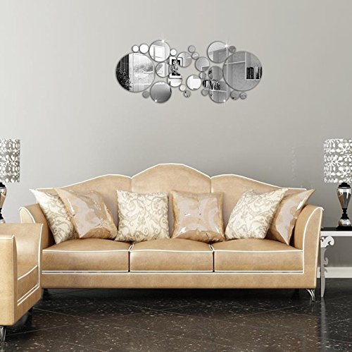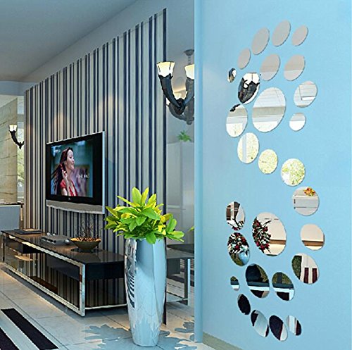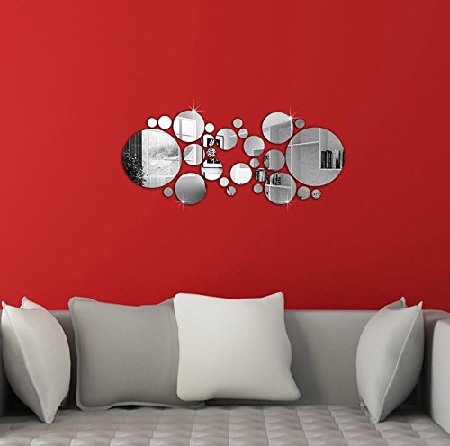 30pcs Circle Wall Decal Mirror Sticker Wall Stickers for Living Room Kitchen Decoration