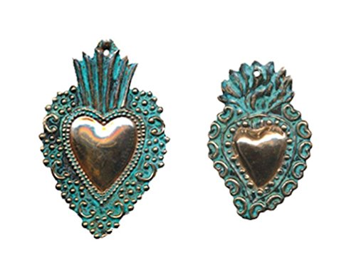 Peruvian Heart Religious Milagros Copper Patina Finish, 4" Size, Set of 2