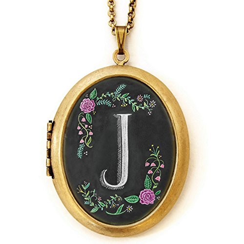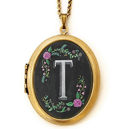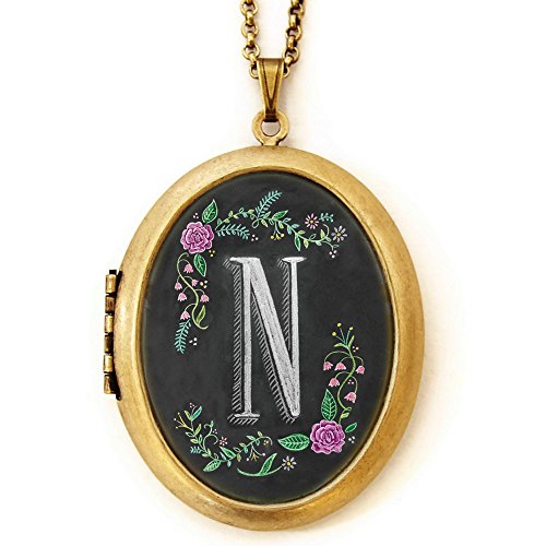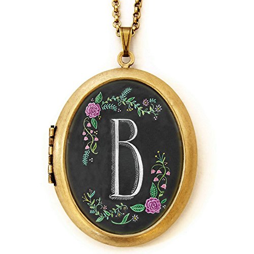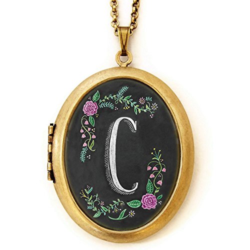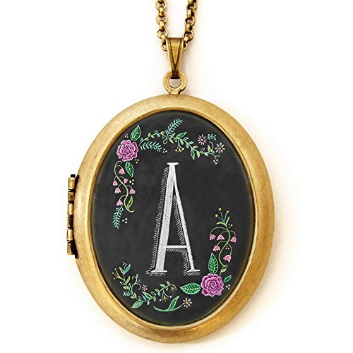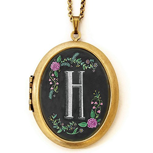 This personalized chalkboard initial art locket necklace is meant to carry your story, start a conversation. A miniature chalkboard initial art print featuring your own alphabet letter graces the front of this tiny treasure locket and is sealed with a glass-like coating for protection and shine. No worries about any chalk dust since this is a print of the original chalkboard art! locket is fashioned from high quality premium brass that has been professionally plated in an antique gold finish for a vintage-inspired style. Locket pendant measures 2 inches tall by 1.5 inches wide and comes with a generous 28 inch rolo chain. Inside has space for 2 photos. This treasure makes the perfect gift for yourself and others! everyone has a story...yours is waiting to be told!Feature
