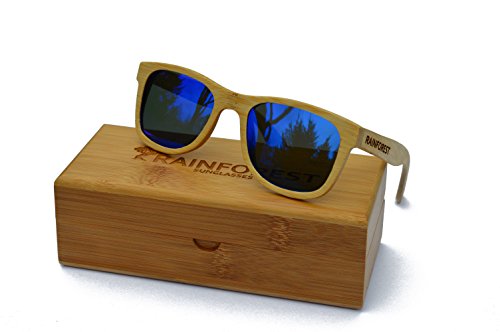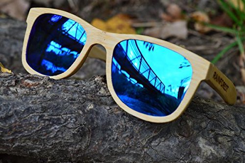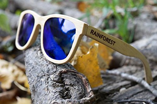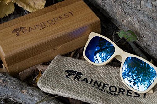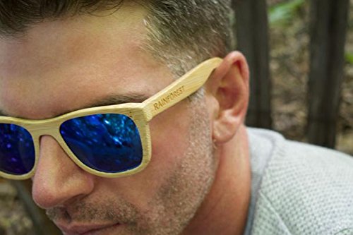 Striking, bold, unique - just like you...The raintree ice is a striking summer and winter frame. Inspired by the singular beauty of the raintree rainforest and the stunning beaches of Australia - they are designed to makes an immediate impact and a lasting impression, making you the talk of any get-together. Their unique mirrored ice lenses reflect the world around them in a kaleidoscope of deep blues, rich indigoes, brilliant azures, and dark skies. Their reflective design means that each new setting, each fractal of light hitting their surface, will bring out a new character and a completely different look and feel to your lenses. Your surroundings will set off an almost elemental firestorm of colors - mirroring the mood and natural essence of the environment around you. Meanwhile, you can feel the smooth grains of the bamboo under your fingers. The sleek, minimalist design of the light-wood frames - impeccably handcrafted from sustainable bamboo - will compliment the cool intensity of the lens with its understated simplicity. Like all of our frames, the raintree is specially designed to be durable and ultra-lightweight so they float on the water. They are perfect for an active outdoor lifestyle on land or sea. Bring them surfing, skateboarding, snowboarding, paddle boarding, or working out. They are especially at home at the beach or on the slopes, at a summer party or on the boat, but wherever you take them, you will be one of a kind.Feature