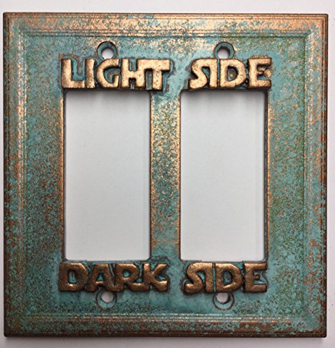 Studio : Sci-Collectables Publisher : Sci-Collectables Binding : Kitchen Product Description Star Wars Light/Darkside Double Decorator Switch/Outlet Cover, fits both. Light switch Cover. Aged Copper in color, patina paint effect. Faux finish, not real metal. Raised/Embossed design. Screws painted to match. Fits all Standard US light switches. Plate measures 4-3/4"x5". (12cmx12.7cm) 0
