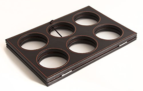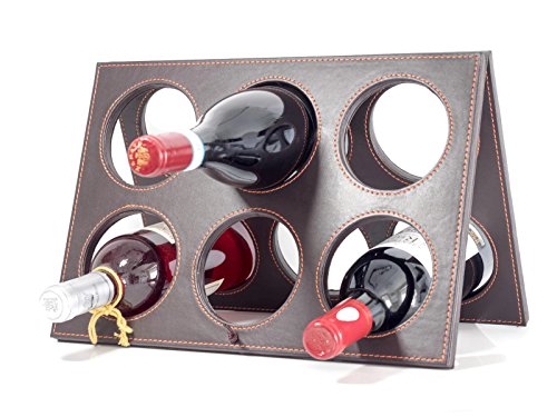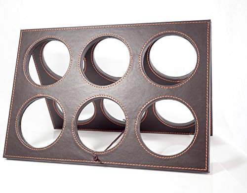 WINE RACK - LUXURY COUNTERTOP 6 BOTTLE DISPLAY BY TRENDY BARTENDER™ - PU LEATHER BOTTLE HOLDER 14 X 8 X 10" FOLDABLE/LIGHTWEIGHT/STURDY - BONUS DRIP-STOP POURER INCLUDED