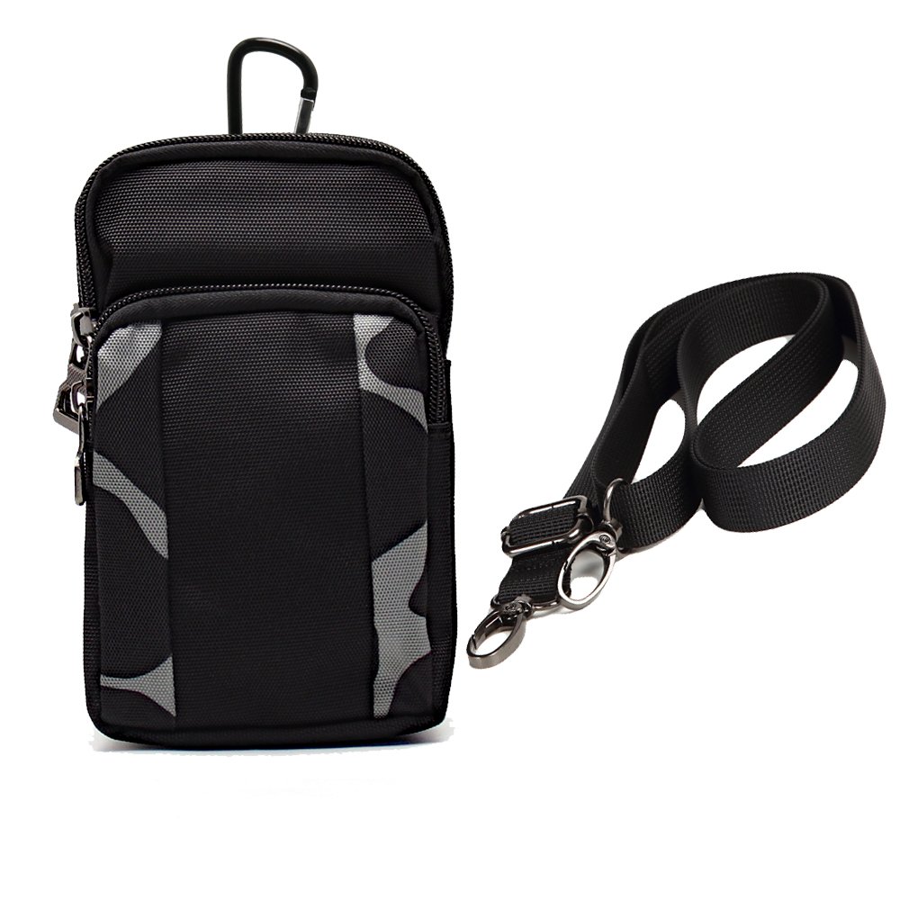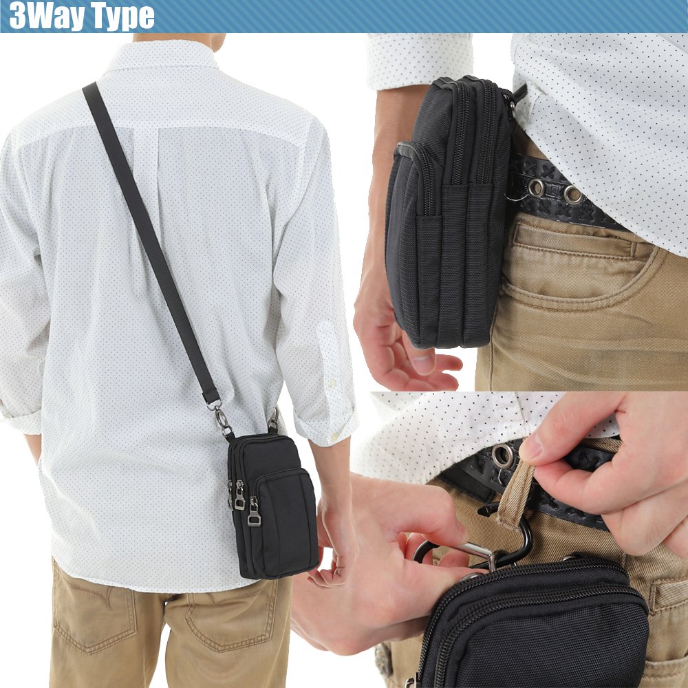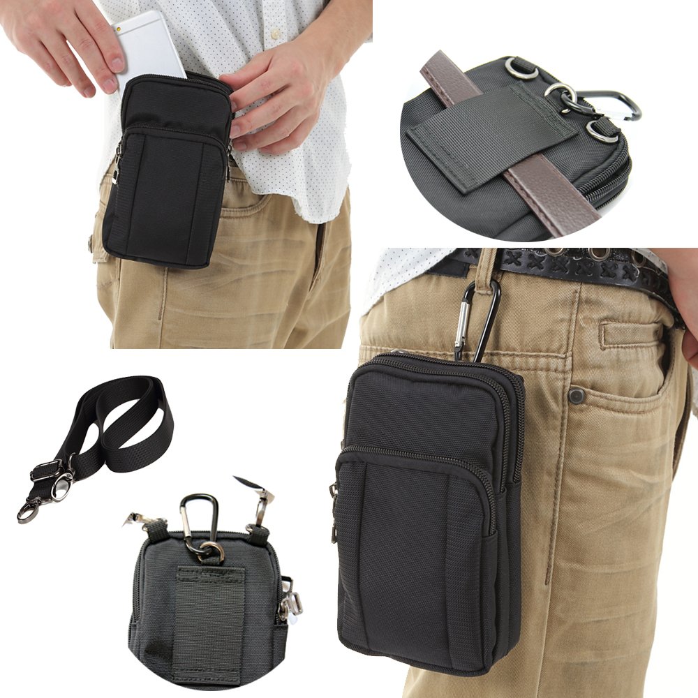 It can be used as a waist pouch through the belt into the belt loop.