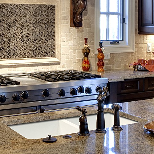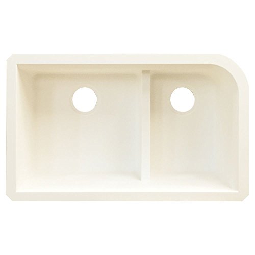 Transolid RUDJ3118-01 Radius 31.75-in x 19.25-in x 9.5-in Granite 1-3/4 J-Shaped Double Undermount Kitchen Sink, White